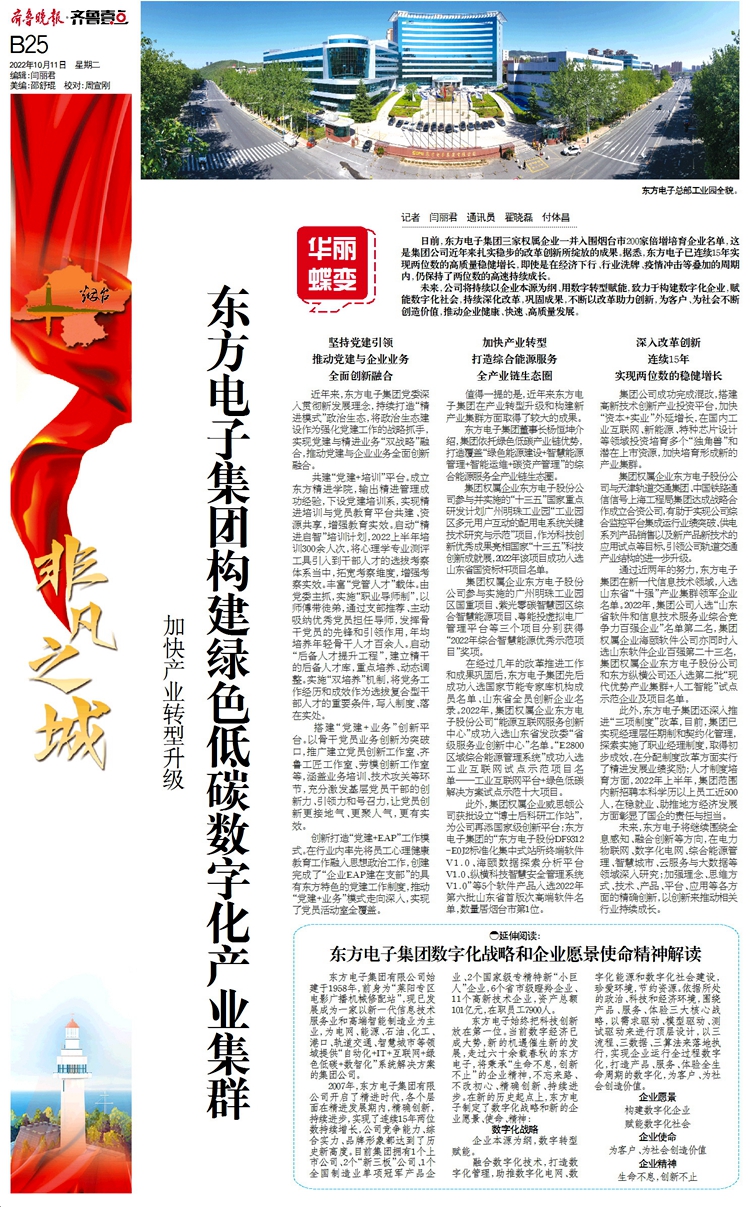 通过近两年的努力,开云·体育(中国)官方网站-登录入口,在新一代信息技术领域,入选山东省“十强”产业集群领军企业名单。2022年,集团公司入选“山东省软件和信息技术服务业综合竞争力百强企业”名单第二名,集团权属企业海颐软件公司亦同时入选山东软件企业百强第二十三名,集团权属企业东方电子股份公司和东方纵横公司还入选第二批“现代优势产业集群+人工智能”试点示范企业及项目名单。